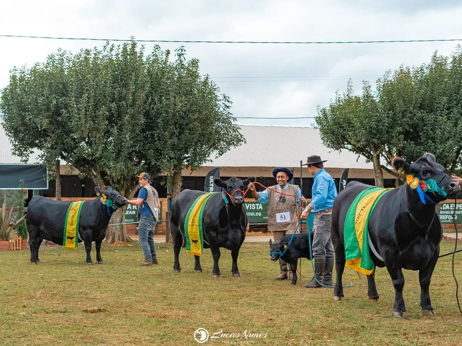 A primeira Exposição Nacional das raças Angus e Ultrablack realizada no município de Vacaria, na região dos Campos de Cima da Serra, teve como grandes vencedores as cabanhas Bortolozzo, Floripana, Conquista, Basso Pancotte e Rincon del Sarandy. Os animais foram avaliados nesta sexta-feira (17) pelo jurado Mauricio Groppo, da Argentina. Na raça Angus, todos os exemplares premiados em campeonatos e grandes campeonatos receberam um passaporte para participar do leilão do Secretariado Mundial Angus, que será realizado no Brasil em 2027.