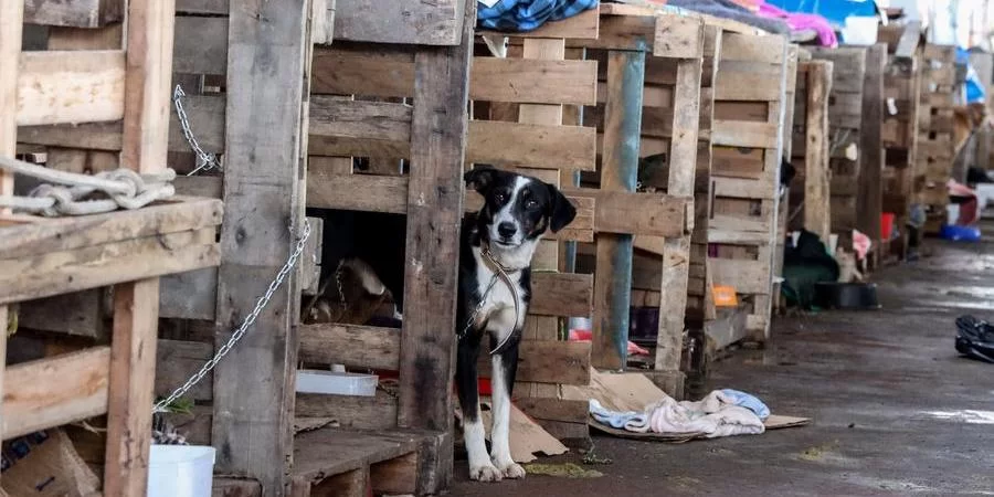 A área, que tem cerca de 2 mil metros quadrados, está repleta de corredores com cachorros acomodados em estruturas de pallets de madeira. Uma área de pronto-atendimento foi montada, mas os casos mais graves têm sido encaminhados para o hospital veterinário da Universidade Luterana do Brasil (Ulbra), onde funciona o maior abrigo de pessoas do estado.
