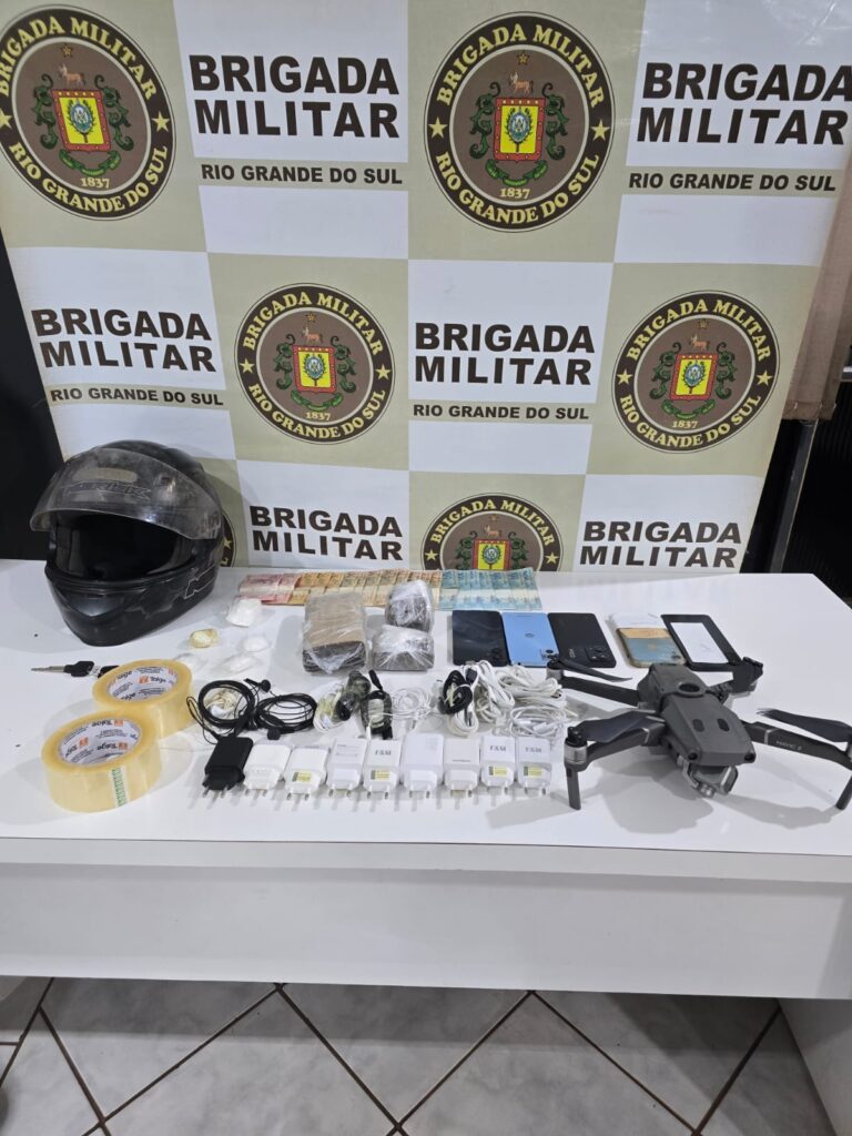 Na noite de quarta-feira, (04/03), a Brigada Militar, por meio da Equipe da Força Tática, realizou a prisão de dois indivíduos por tráfico de drogas em São Luiz Gonzaga. A guarnição visualizou uma motocicleta, cujo motorista desobedeceu à ordem de parada e posterior abandonou. Durante diligências, foi localizada uma bolsa, que estava de posse do indivíduo, e na qual continha três porções de substância análoga à cocaína, uma substância com característica análogas à crack, e a quantia de R$1.180. Também foi localizado outro individuo, e, em ação contínua foi localizado um invólucro contendo três tijolos de substâncias semelhantes à maconha e uma porção grande de substância análoga à cocaína, além de diversos celulares e drone. Os materiais e a moto foram apreendidos e os homens foram detidos e conduzidos para a Delegacia de Polícia Civil para os procedimentos legais, onde foi lavrado o flagrante.