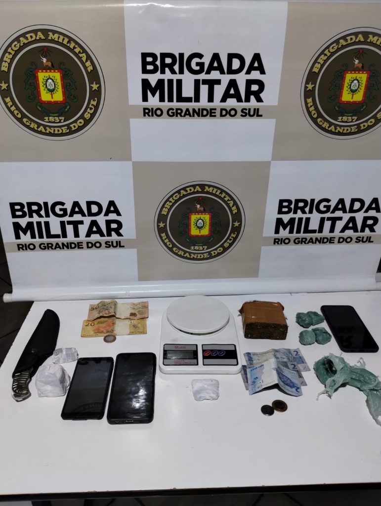 Os indivíduos relataram que teriam mais entorpecentes na cidade de Bossoroca. Diante das informações foi feito contato com o Setor de Inteligência do 14 BPM e a Guarnição da Brigada Militar de Bossoroca, os quais após diligências em conjunto, lograram êxito na apreensão de mais entorpecentes e uma balança de precisão, na casa da namorada de um dos presos, a qual é menor de idade. Já na casa de outro individuo, responsável por guardar os entorpecentes, foi encontrado 01 porção grande de maconha e 05 porções menores, já fracionadas e prontas para consumo. Foram apreendidos aproximadamente 286 Gr de maconha com os presos . Que dois individuos foram encaminhados ao presídio Estadual de São Luiz Gonzaga, sendo que a menor foi apreendida e após o registro policial, foi entregue a sua genitora. O veículo utilizado pelos acusados foi removido ao Depósito do Detran.