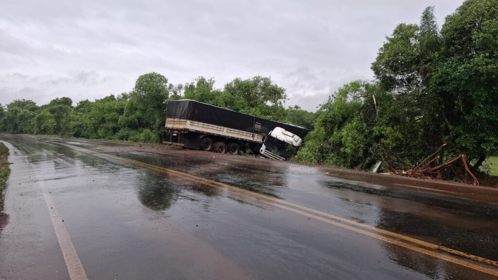 Carreta sofre aquaplanagem próximo a Estação Piratini em Bossoroca
