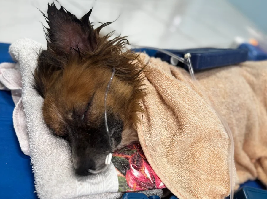 No registro feito na Delegacia de Polícia da cidade, como crime de maus-tratos, aponta que o animal está com cinomose em estado avançado, cheio de pulgas, carrapatos, apresentando um quadro de febre alta e desidratação.