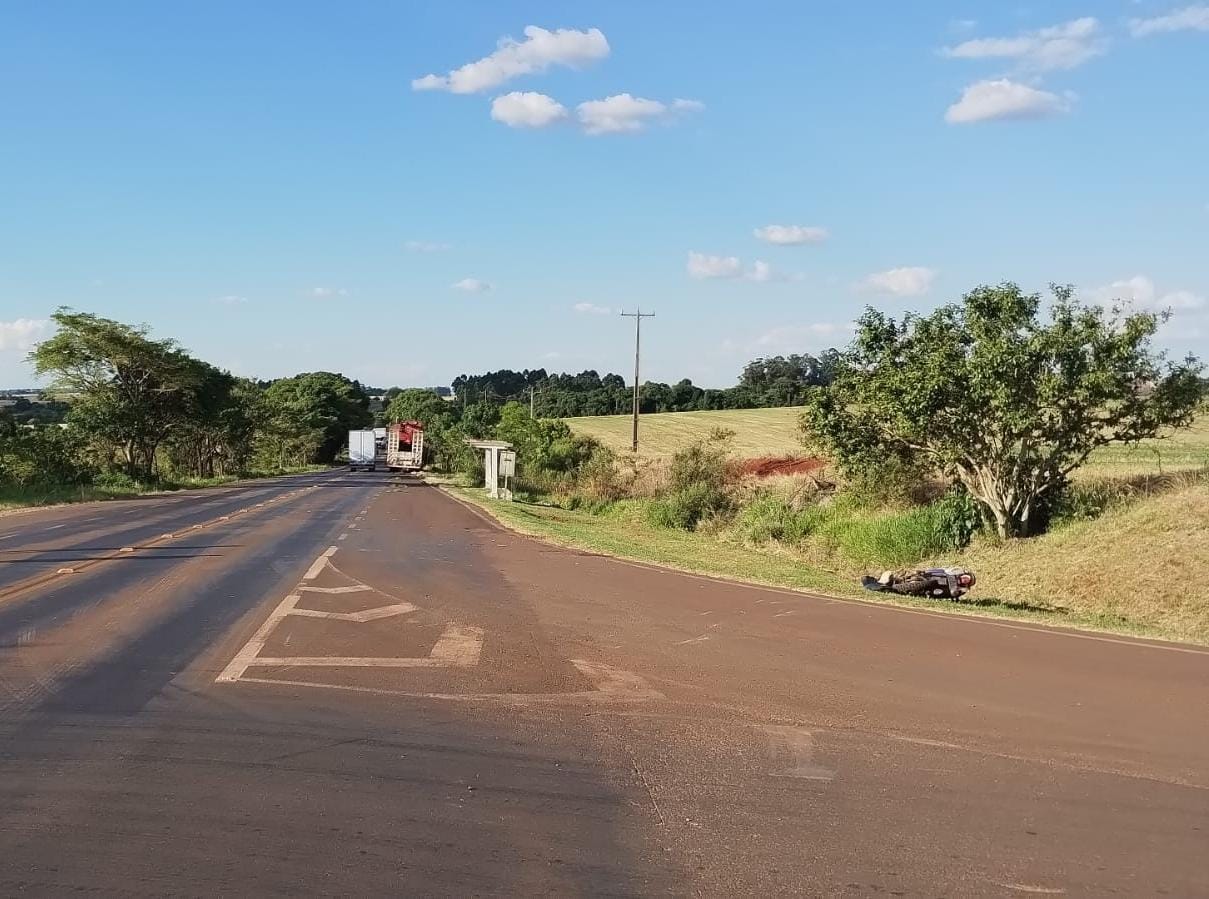 No local, os policiais verificaram que o caminhão Volvo/FH 420, que seguia pela ERS-168 no sentido Santiago–São Luiz Gonzaga, colidiu com uma motocicleta Yamaha XTZ. Conforme relatos colhidos pela equipe, o motociclista não teria realizado a parada obrigatória no cruzamento, momento em que foi atingido pelo caminhão.