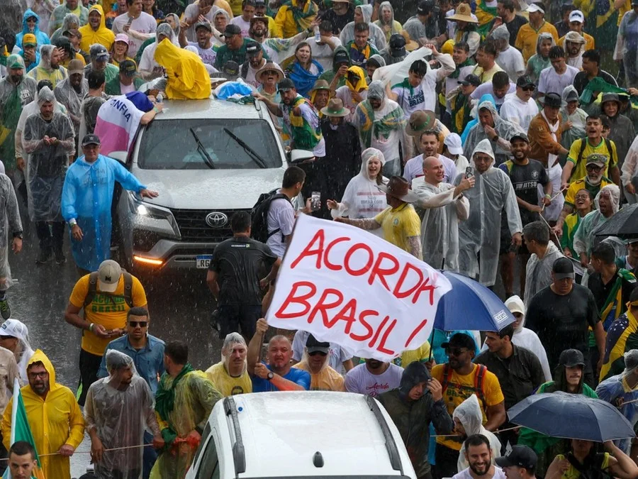 Com camisas da seleção brasileira e enormes guarda-chuvas ou capas de chuva, milhares de seguidores de Bolsonaro desafiaram a tempestade perto da Praça do Cruzeiro, onde se concentraram após uma marcha promovida pelo deputado Nikolas Ferreira. Eles foram subitamente surpreendidos por um clarão e um estrondo, segundo um vídeo divulgado pela imprensa e nas redes sociais.