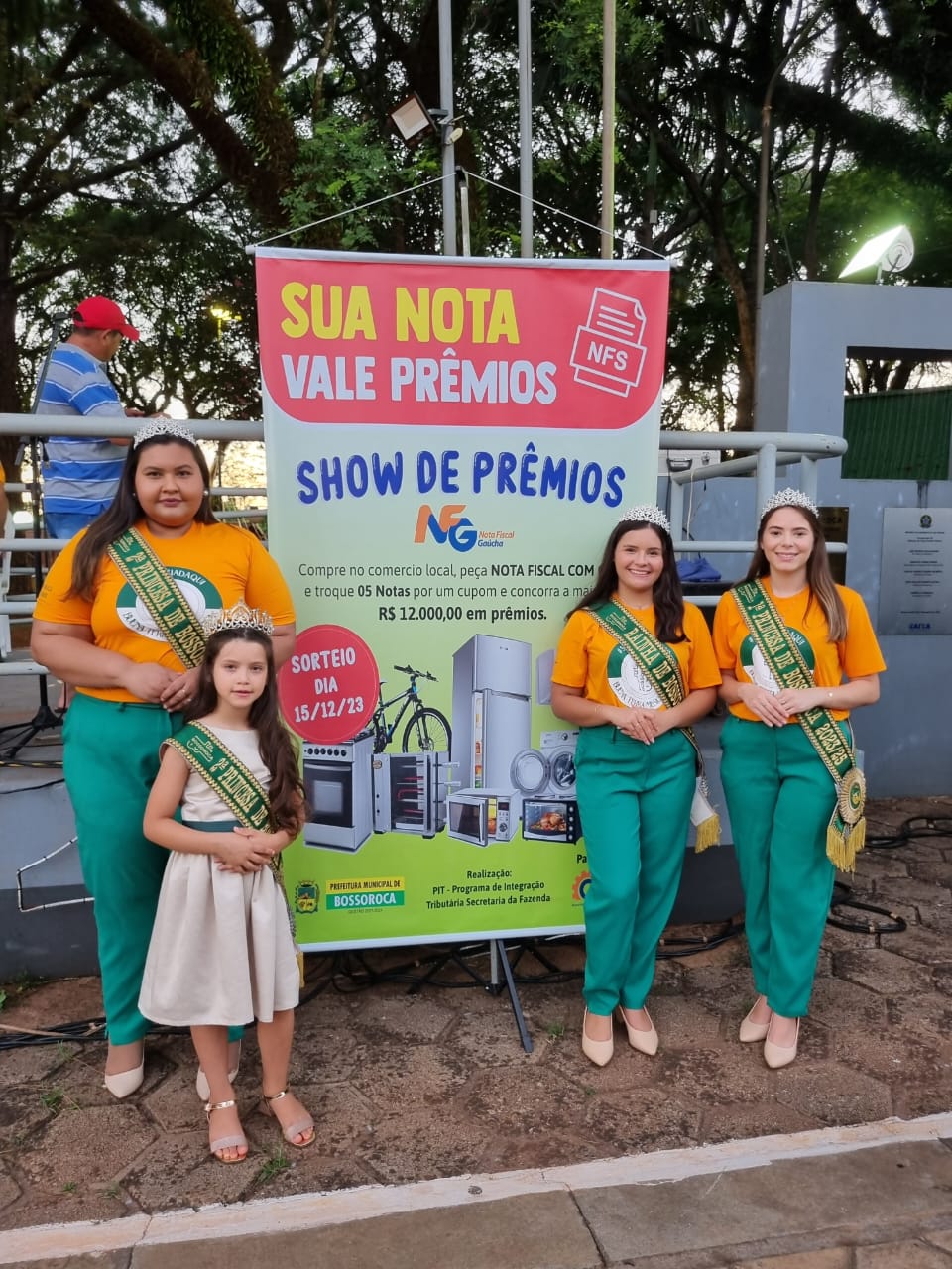 No sábado (13/1) aconteceu em Bossoroca na Praça Porfírio Pereira o sorteio dos prêmios Sua Nota Fiscal Vale Prêmios, uma realização do Programa de Integração Tributária da Secretaria da Fazenda (PIT). Foram sorteados mais de 12 mil em prêmios, para os cidadãos que realizaram as trocas das suas notas fiscais por cupons durante o ano de 2023.